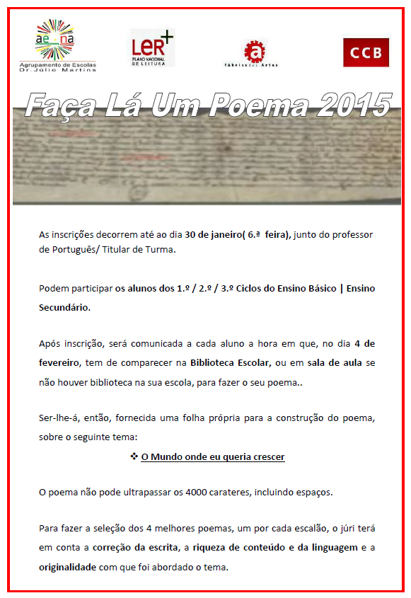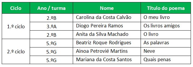 Estão de parabéns todos os participantes, bem como os professores e bibliotecas escolares envolvidos neste concurso.