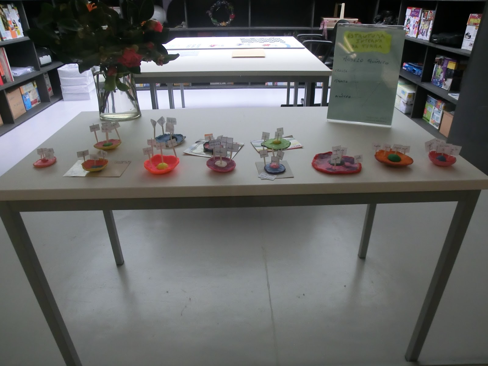 Dentro da biblioteca também se podem ver os trabalhos executados pelo 7ºD e 7ºF na disciplina de Ciências Naturais, sobre a estrutura interna da terra.